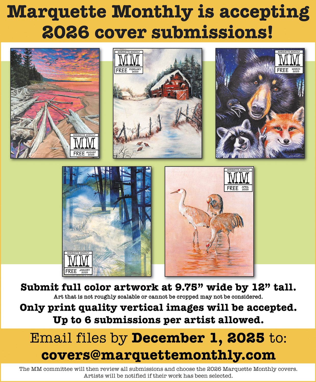 Marquette Monthly is an independently and locally owned magazine focusing on the people, places, art and culture of the central Upper Peninsula of Michigan. Also popular with readers is the calendar of events each month. Marquette Monthly prides itself in featuring local writers and artists. Established in 1987, Marquette Monthly has continued the tradition of sharing remarkable stories of the area. Find MM at approximately 250 central U.P. distribution points or online here in flip book format. A complete list of locations can be found on the distribution tab on this site.